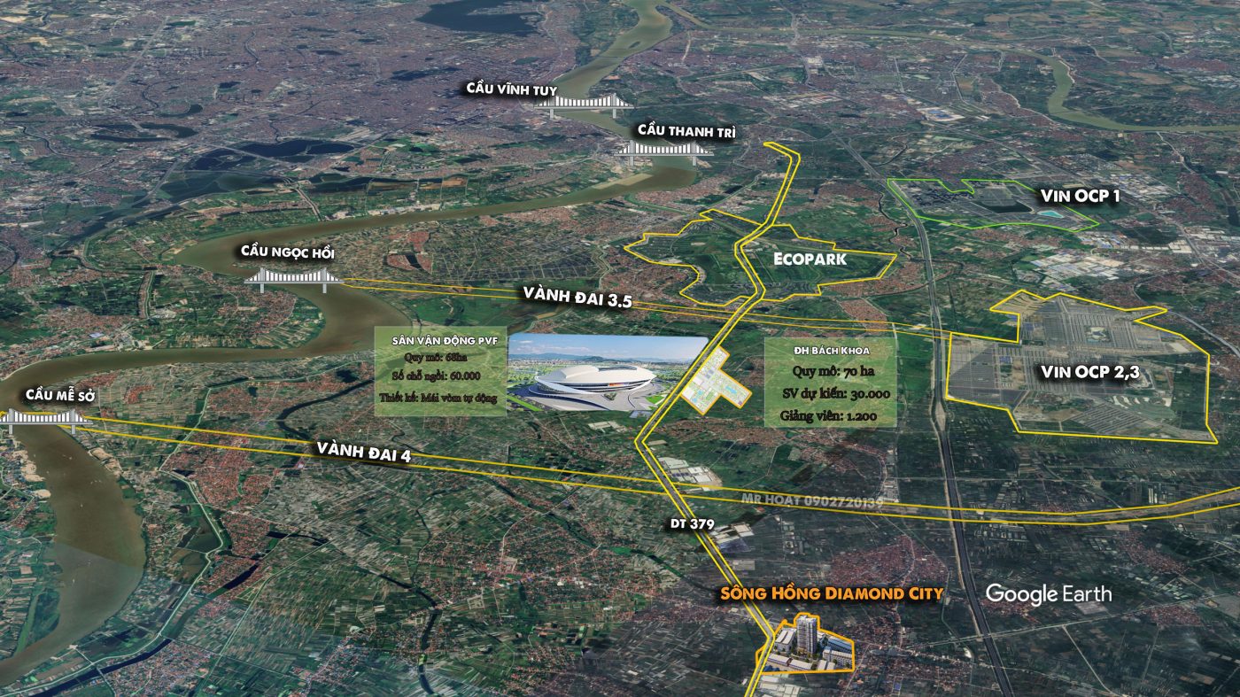 Vị trí trung tâm kinh tế trong tương lai: Với hàng loạt các tuyến hạ tầng đang được quy hoạch kế cận dự án như Vành Đai 3.5, Vành đai 4, Cầu Ngọc Hồi, Cầu Mễ Sở, Trường Đại học Bách Khoa Hà Nội Cơ Sở Hưng Yên rộng 70ha quy mô 30.000 sinh viên và 1200 CBNV. Đặc biệt Sân vận động tiêu chuẩn tổ Wolrd Cup quy mô 60.000 mới được Khởi công nằm cạnh dự án.