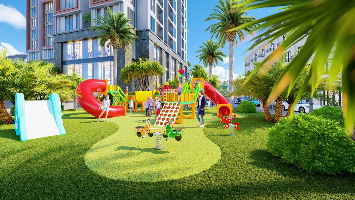 Điểm nhấn nổi bật là hệ thống cảnh quan xanh, công viên nội khu, bể bơi, quảng trường trung tâm, tạo nên môi trường sống trong lành và thư thái.
