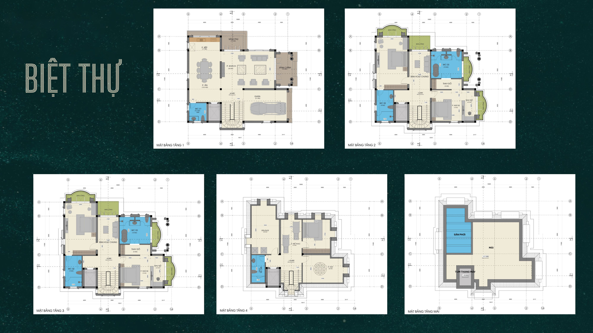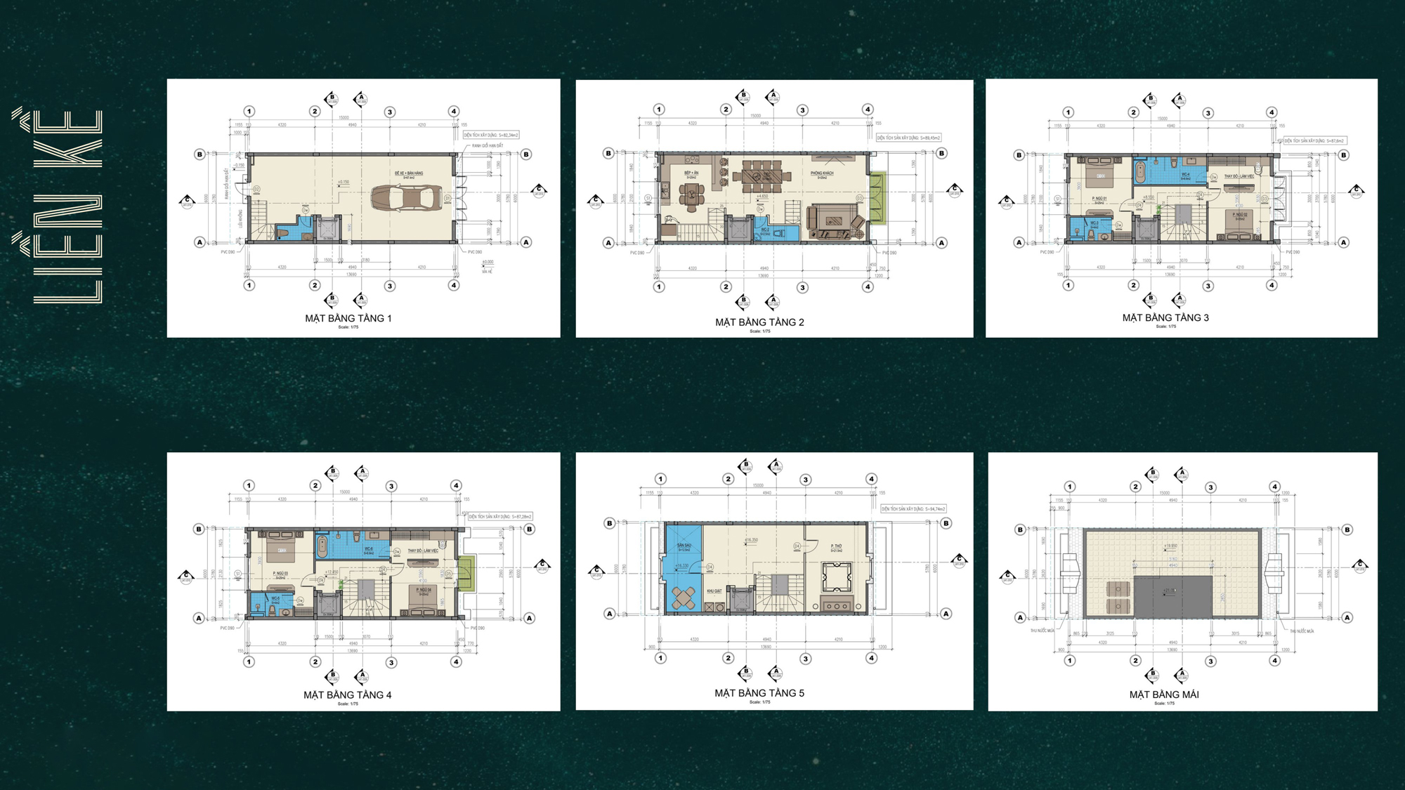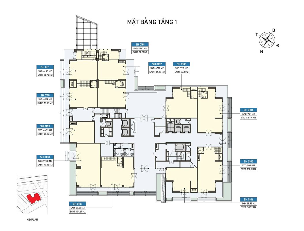 – Cao tầng: từ 40m² đến 90m². |